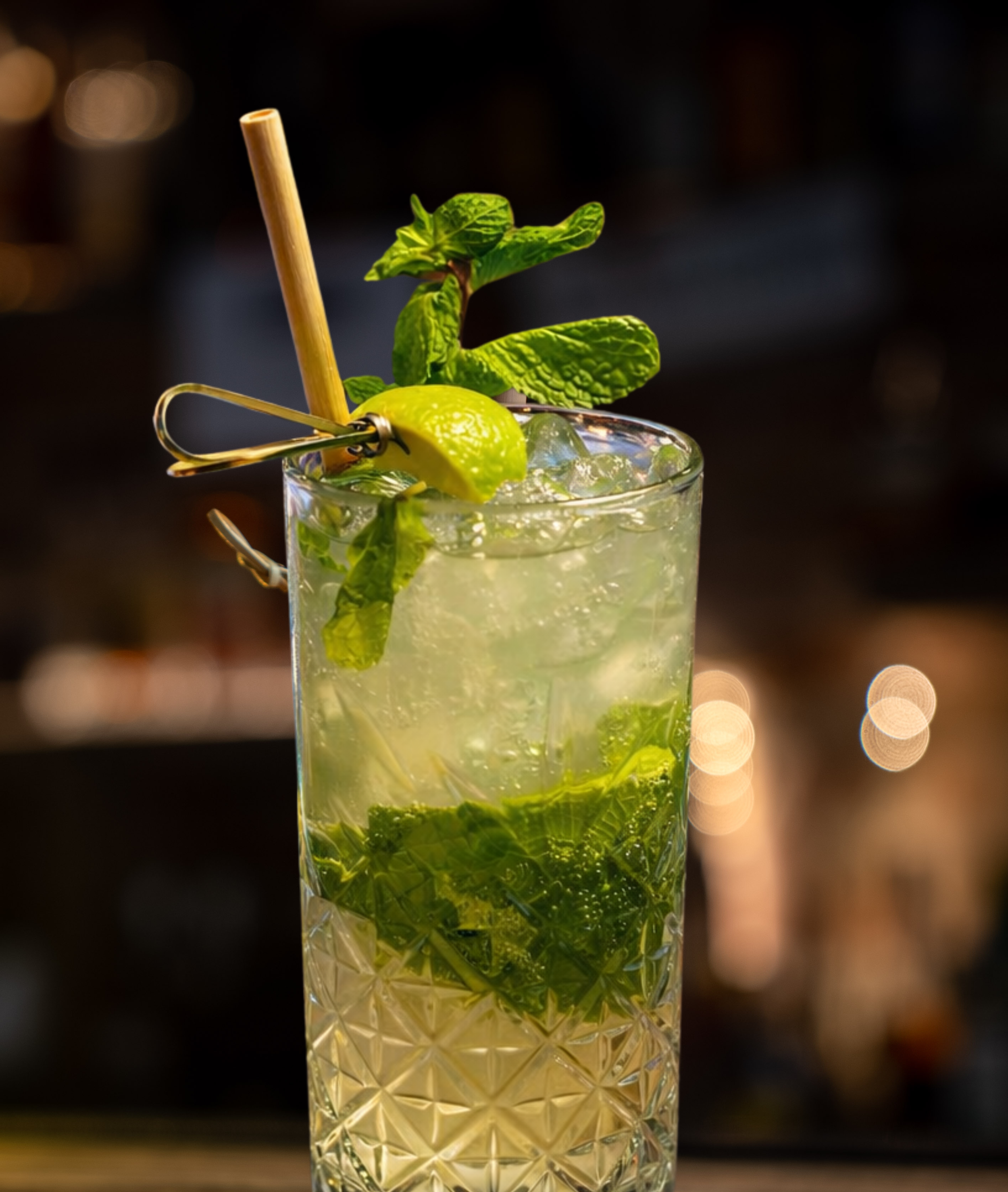 Wray & Nephew rum 63%, angostura bitters, lime juice, fresh mint, cane sugar syrup, brown sugar - topped with champagne or sparkling wine